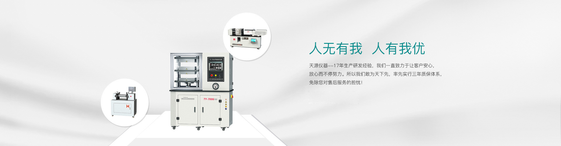 “江蘇天源”經(jīng)過15年的錘煉,現(xiàn)有員工50余人,公司設(shè)有電子式萬能試驗機、塑料物理檢測儀器、橡膠物理檢測儀器和高分子材料制樣設(shè)備4條產(chǎn)品線,為用戶提供全系列的電子萬能試驗機(10N-600Kn)、全系列高分子材料檢測儀器及高分子材料工藝應(yīng)用培訓(xùn)與研發(fā)。